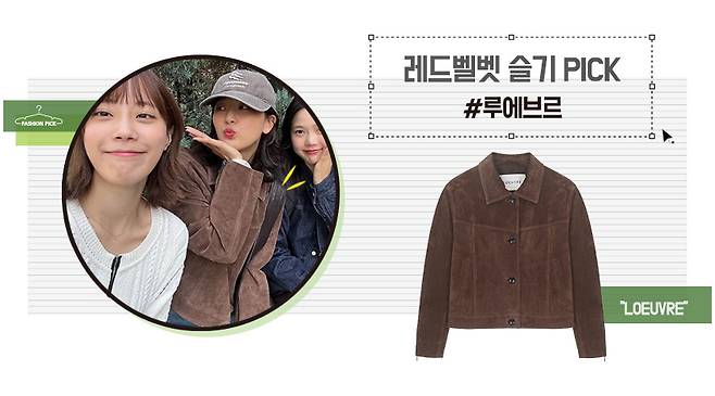 정채연도 기은세와 같은 온앤온 자켓으로 멋스러운 스웨이드 자켓을 완성시켜줬답니다~