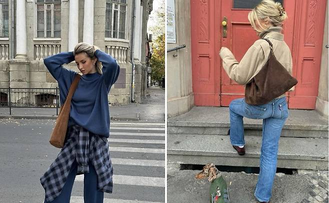 스웨이드 자켓이나 스커트가 부담스럽다면 스웨이드 가방을 활용해 스웨이드 코디를 완성해보셔도