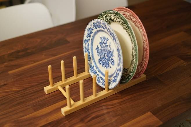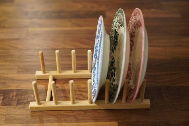 요 제품은 진짜 가성비 끝판왕이에요. 단돈 2천 원. 다른 브랜드에서 구매한 원목 접시 정리대 훨씬 비싼 것도 있는데 크게 기능적으로는 차이가 없는 것 같아요.