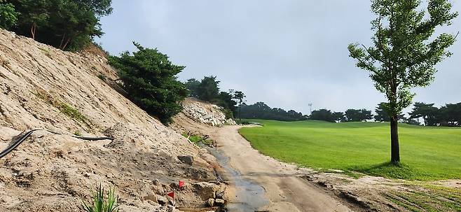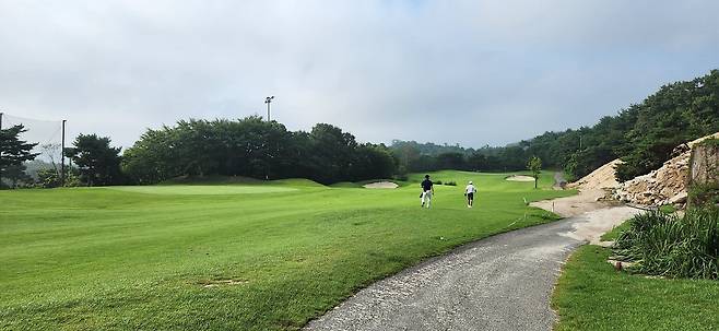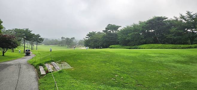 중지 페어웨이에 이날 잔디가 꽤 무성하게 자라있었습니다. 역시, 많은 비 때문인지 무거운 장비로 페어웨이를 관리하기 무리였나 보네요. 덕분에 공이 약간 풀 아래로 잠기는 현상이 자주 있어서 자칫하면 두꺼운 샷이 나올 수 있습니다.