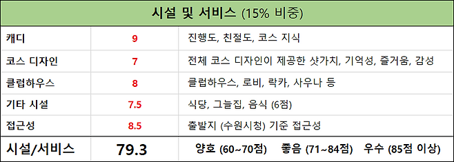 캐디의 코스 설명, 운영 및 친절도 : 9 점