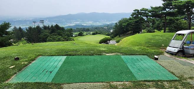 잔디로 된 티잉 그라운드 상태는 생각보다 별로입니다. 멀쩡해 보이는데 가서 티를 꽂으려고 보면 잔디가 너무 깁니다. 따라서 공을 높이 티업 해야만 잔디 풀이 클럽과 공 사이에 찍히지 않습니다. 그러나 높이 티업하다 보니 간혹 하늘로 솟구치는 뽕샷도 나올 수 있네요. 티잉 에이어를 좀 짧게 관리하면 좋겠습니다. 벨라 코스는 인조 매트가 없었지만 후반 몬티 코스에서 서너 번 (파3, 파4) 볼 수 있었습니다.