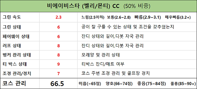 BA VISTA 컨트리클럽은 적당한 길이의 코스로 초보자와 여성분들이 즐길 수 있는 무난한 골프장입니다. 하지만, 회원이 아니면 비싸게 다가오는 그린피가 저에겐 약간 부답스럽게 느껴지네요. 이 가격이면 더 예쁘고 챌린징한 골프장도 여럿 있습니다.