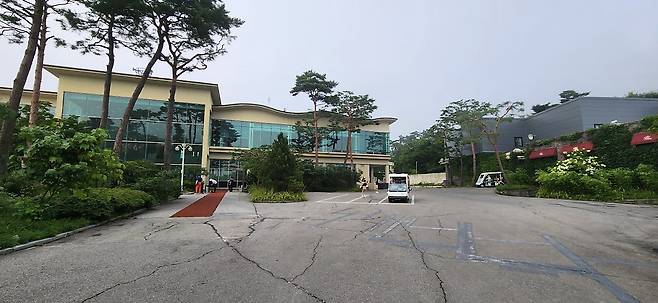 스타트 광장 한쪽에 있는 그늘집/하프웨이 하우스는 63홀 골프장 사이즈에 비해 작은 편입니다.