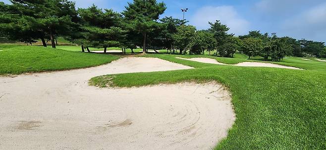 페어웨이 벙커는 의외로 아주 부드러워서 공이 아주 살짝 내려앉아있는 경우가 있습니다. 따라서, 벙커 턱이 크게 높지 않아도 공을 잘 띄우지 못하면 전방으로 멀리 보내기 까다로웠습니다. 페어웨이 벙커 모래가 그린 사이드 벙커만큼 부드러운 코스는 오랜만에 보는 것 같네요.