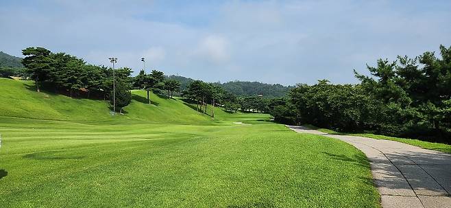페어웨이는 평균 넓이여서 어려워 보이지 않습니다만, 거의 매홀마다 양옆이 OB 또는 페널티 구역입니다. 덕분에 너무 조심하다가 샷이 좌우로 빠지는 심리적인 요소가 있는 것 같습니다. 페어웨이는 대체로 평평하지만, 한두 홀 중간에는 그라스 벙커처럼 작은 언덕들로 이뤄진 곳도 있었습니다.