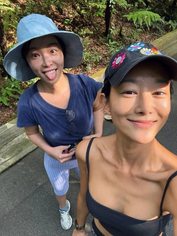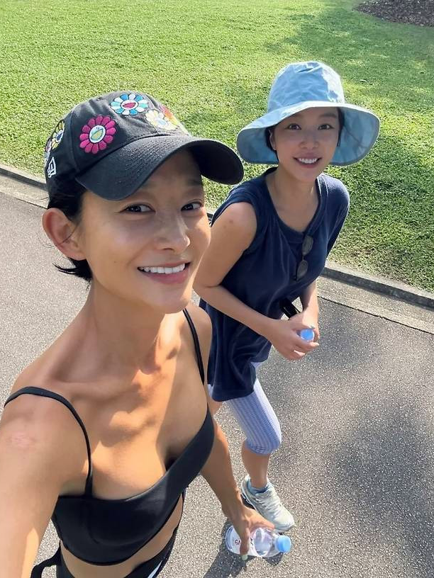 배우 황정음이 감각적인 컬러 매치와 핏으로 활동적인 매력을 살린 애슬레저룩을 완성했습니다.