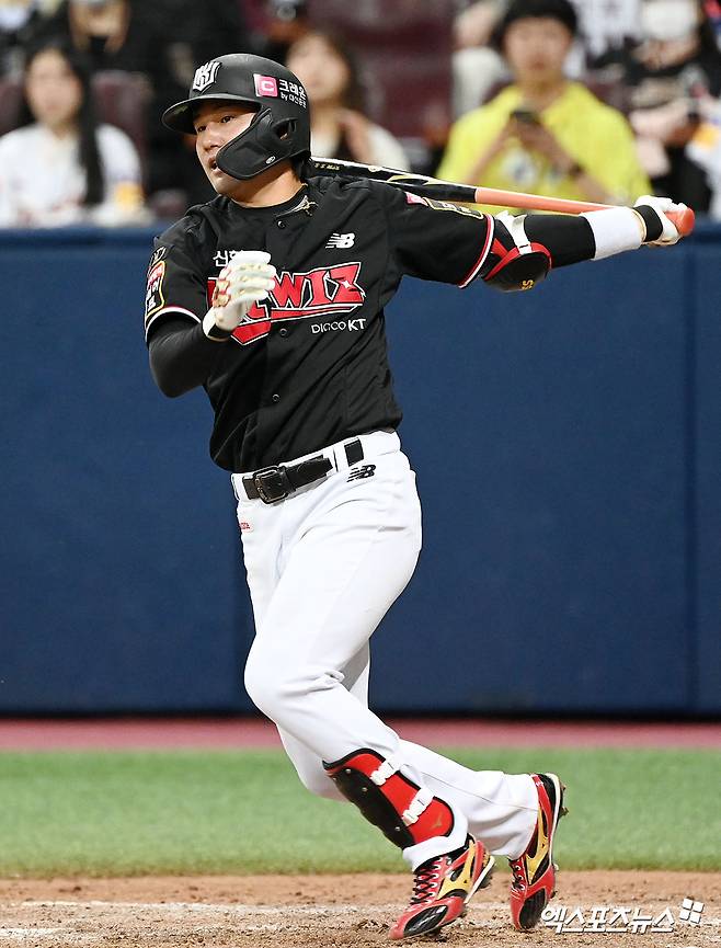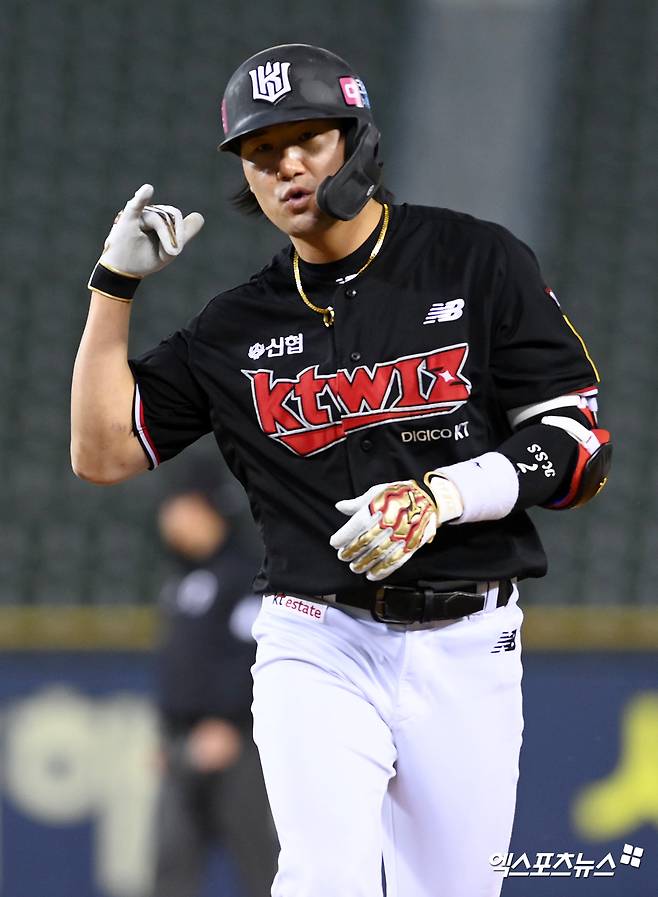 또 "막내라서 불편한 건 없다. 형들이 워낙 경험들이 많으셔서 저를 크게 터치하는 부분도 없고 그냥 편안하고 즐겁게 하고 있다"며 "올 시즌 오랜만에 유격수로 뛰고 있지만 재미있다. 생각대로 야구가 되는 게 기분 좋고 KT로 오면서 에이징 커브라는 말을 지우고 싶었다. 아직 어린 나이인데 더 할 수 있다는 걸 보여드리고 싶었는데 아직까지는 다행히 원하는 대로 되고 있다. 막내라서 더 열심히 해야 한다"고 강조했다.