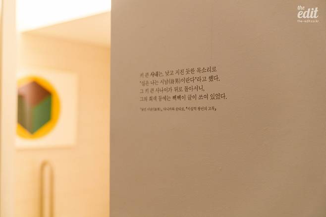 1층에는 투바이투라는 카페와 함께 전시 공간이 있다. 나는 곧장 계단을 통해 소전서림이 있는 지하 1층으로 내려갔다. 계단은 우측으로 돌아가며 내려가게 설계되어 있다. 돌아가며 내려가는 설계는 공간과 공간을 단절시키는 효과를 준다. 덕분에 속세를 떠나 멋진 신세계로 입장하는 느낌을 받았다. 책을 사랑하는 사람들이 모인 비밀 북클럽에 방문하는 기분이기도 했다.