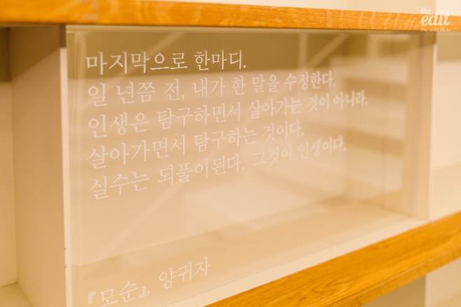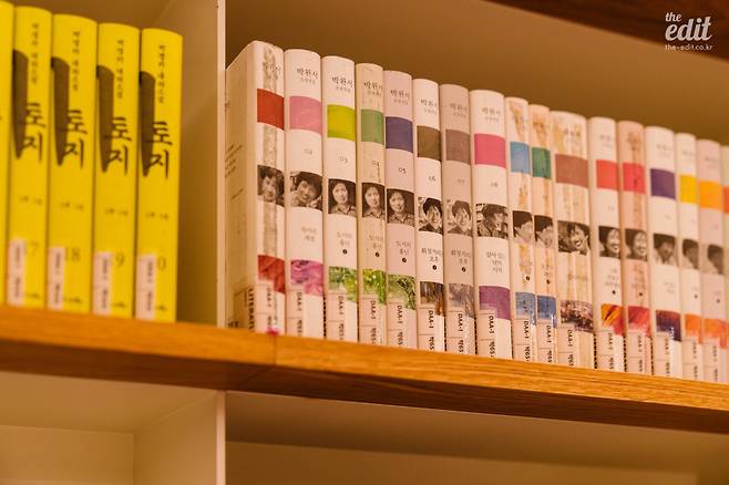 예를 들어 이런 거다. 도서관에서는 보통 책 제목을 기준으로 가나다순 정리를 한다. 반면, 소전서림은 작가 이름으로 분류해 놓았다. 곳곳에 놓인 아이패드를 통해서 책 위치를 검색한 후 책을 찾으면 바로 옆으로 그 작가가 집필한 다른 작품이 쭉 나열되어 있다. 문학에 대한 애정이 느껴지는 방식이다. 친구가 “나 요즘 이런 소설 읽어”라고 말하면 덩달아 신이 나서 “그렇다면 이 소설도 읽어볼래? 너도 분명히 좋아할 거야.” 답해주는 것 같다. 책장 한 칸을 가득 채우고 있는 박완서와 김중혁이 소설이 눈에 들어왔다.