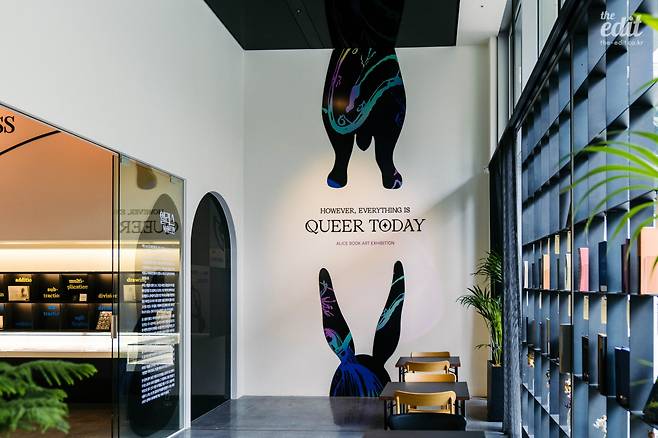 마지막으로 소개할 곳은 1층에 있는 전시 공간이다. 낮에는 카페, 저녁에는 바가 되는 투바이투 바로 옆에 있다. 현재는 <앨리스 북아트전>이 개최하고 있다. 보통의 전시와 비교했을 땐 규모는 소박하지만 도서관에서 선보이는 전시답게 충분히 흥미롭게 읽을 만한 텍스트가 많았다.