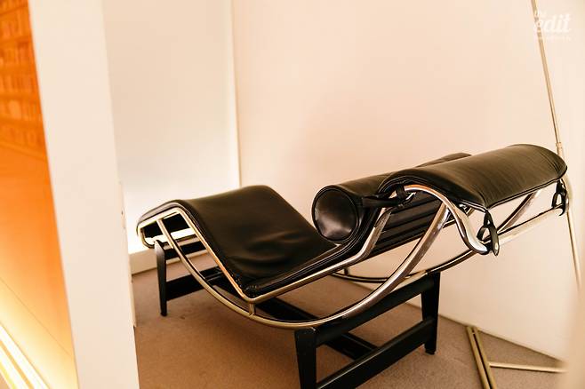 라캉스를 위한 완벽한 좌석으로 1인 서가를 추천한다. 소전서림에서 가장 인기가 많은 곳이지 않을까. 나는 사람이 없을 때 촬영하기 위해 오픈런 했는데 1인 서가는 빠르게 빈자리가 사라지기 시작했다. 참고로 사진 속 의자가 바로 위에서 언급했던 LC4다. 몸의 곡선에 딱 맞춘 듯 편안한 느낌이었다. 20분쯤 누워있다가 이러다가는 잠들겠다 싶어서 몸을 일으켜 다시 촬영을 하러 떠났다.