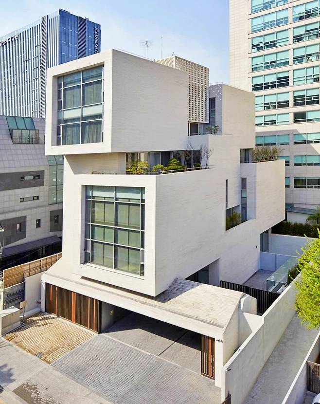 소전문화재단이 운영하는 도서관 소전서림은 ‘흰 벽돌로 둘러싸인 책의 숲’을 뜻한다. 멀리서 보면 저기가 바로 소전서림이구나 예측 가능할 정도로 독특한 외관이 시선을 사로잡는다. 하얗고 네모난 상자를 수직으로 겹겹이 쌓아 올린 듯한 모양새가 예사롭지 않다. 건물은 스위스 건축가 다비데 마쿨로가 2016년 설계했다. 리움 미술관을 설계한 마리오 보타 사무소에서 경험을 쌓은 건축가다.