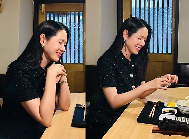 배우 손예진이 7일 인스타그램에 "Great food with great company(좋은 사람들과 좋은 음식)💙"이라는 글과 함께 여러 장의 사진을 게재했습니다.