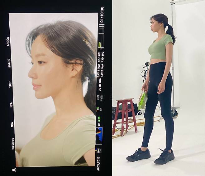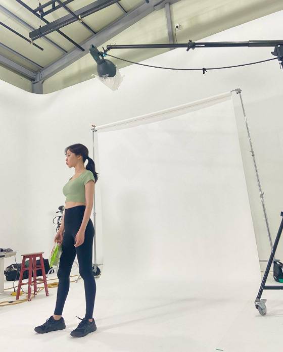 공개된 사진 속 김아중은 몸에 밀착하는 민트색 크롭톱에 블랙 레깅스를 착용한 모습이다. 그녀는 늘씬하고 탄탄하게 균형 잡힌 몸매와 날렵한 얼굴 옆선을 자랑했다.