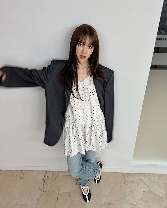 #윤은혜 #윤은혜패션 #데일리룩 #꾸안꾸 #오버사이즈자켓 #도트블라우스 #스트랩슈즈 #여름코디 #스타패션