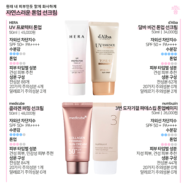 베이스로 쓸 수 있는 선크림 모아봤어요!
