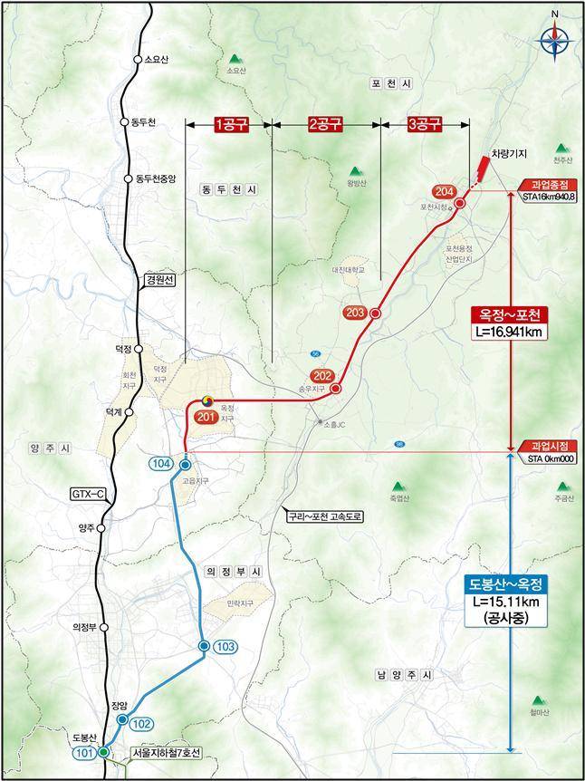 옥정~포천선은 서울지하철 7호선을 연장하는 '도봉산~포천선'과 이어지는 구간이다.