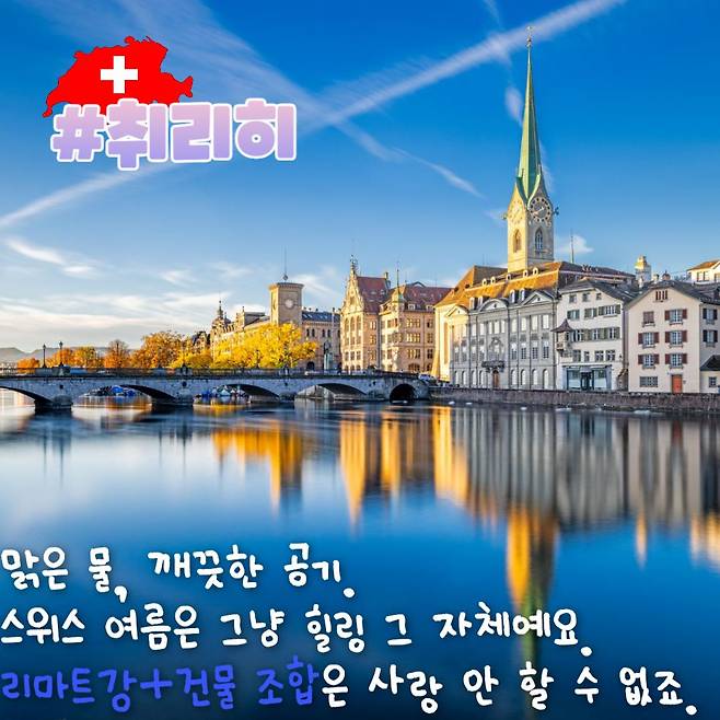 또한 취리히는 스위스 금융 중심 도시로, 자연과 대비된 역동적인 풍경도 만날 수 있습니다.