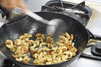 식탁이나 간식으로 양념된 견과류, 특히 달달하게 코팅된 땅콩이나 캐러멜 피칸 같은 음식을 자주 먹는다는 점입니다.