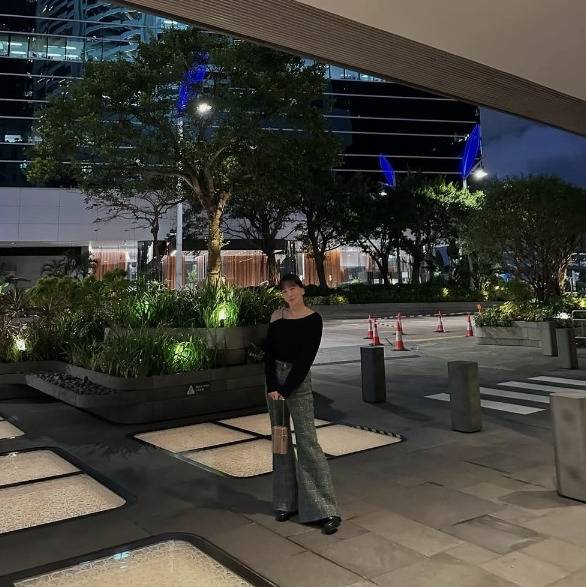김정은은 세련된 모노톤 스타일링으로 도시적인 감성을 강조하며, 블랙 오프숄더 니트 톱으로 우아한 분위기를 연출했습니다.
