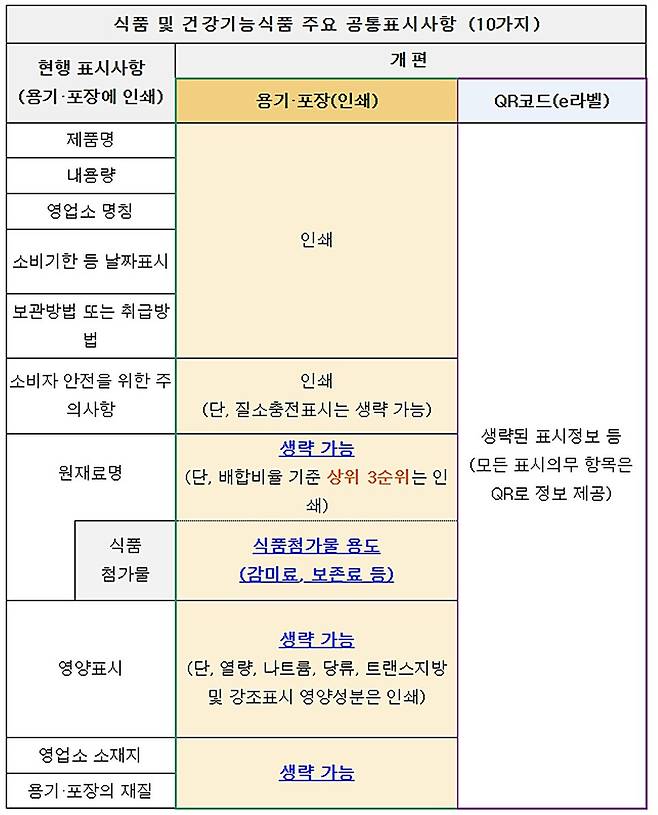 한편, 용기 및 포장에 필수로 표기해야 하는 사항이 줄어들면, 정보 표시를 위한 공간이 상대적으로 넉넉해진다. 이에 따라 식약처는 소비자들이 안전에 관한 필수 정보를 보다 수월하게 확인할 수 있도록 하는 조치를 포함했다.