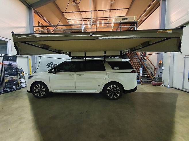 특히 에고이랙(EGOIRACK) 같은 카니발 전용 루프랙 시스템은 어닝 장착을 염두에 두고 설계되어 안정성과 편의성을 크게 높였다는 평가를 받고 있다. 여기에 루프탑텐트까지 더하면 “이동하는 펜션” 수준의 활용도를 자랑한다.