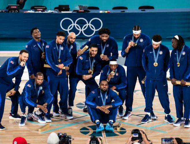 그렇기 때문에 미국의 스타 플레이어들은 파리 올림픽에 초점을 맞췄다. 르브론 제임스(레이커스)를 필두로 스테픈 커리(골든스테이트), 케빈 듀랜트(피닉스)가 단연 중심에 있다. 이들 외에도 앤써니 데이비스(레이커스), 즈루 할러데이(보스턴), 제이슨 테이텀(보스턴), 조엘 엠비드(필라델피아), 데빈 부커(피닉스), 타이리스 할리버튼(인디애나), 앤써니 에드워즈(미네소타), 데릭 화이트(보스턴), 그리고 뱀 아데바요(마이애미)가 합류했다.