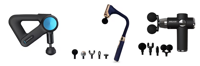 해피룸 휴플러스 전신 커브건은 안마봉처럼 독특한 형태의 마사지건이다. 길이가 길고 자유롭게 휘어져 몸 구석구석을 시원하게 마사지할 수 있다. 멜킨스포츠 어썸 미니 마사지건은 가볍게 사용하기 좋은 마사지건. 345g으로 가볍고 20단계까지 세밀한 강도 조절이 가능해 매일 부담 없이 셀프 마사지를 즐길 수 있다.