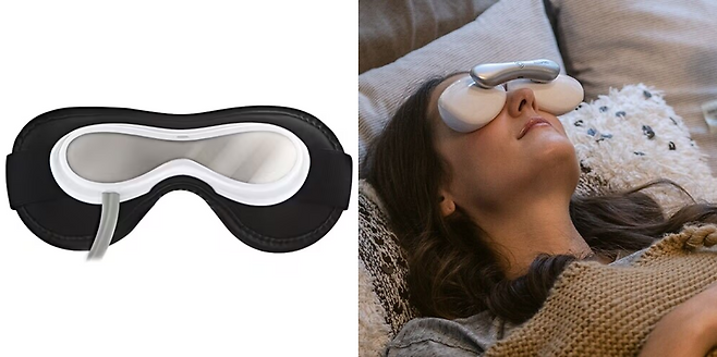 휴테크, 휴비딕 제품은 공기압을 통해 눈 주변을 부드럽게 지압하는 일반적인 방식의 눈마사지기다. 온열 기능이 제공돼 잠들기 전에 사용하면 숙면에도 도움이 된다. (시야 차단 효과는 덤!) 휴비딕 프리미엄 눈마사지기는 공기압과 진동 두 가지 방식으로 눈과 관자놀이를 마사지해주며, 블루투스 기능도 적용돼 음악을 들으면서 마사지를 즐길 수 있다.