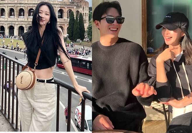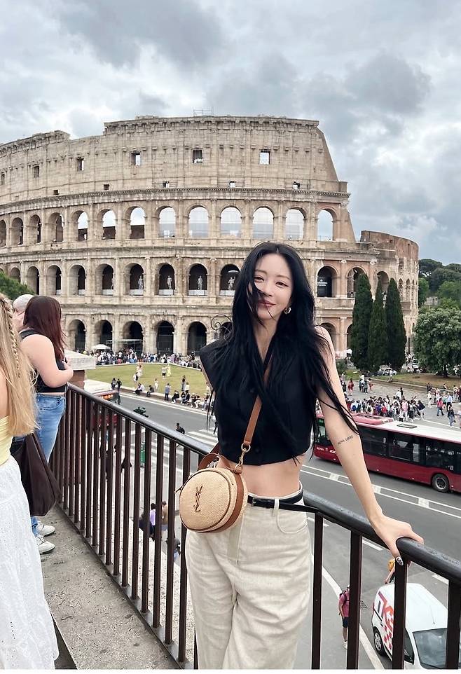 로마 콜로세움을 배경으로 한 모습은 여행지의 낭만과 함께 트렌디한 감각을 잘 보여줬습니다.