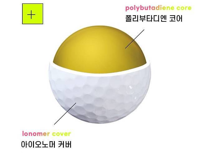 2피스 골프공입니다. 골프공은 단순해 보이지만, 어떤 소재로 어떻게 설계하느냐에 따라 타격감과 정확성이 결정되는데요. 특히 골프공의 중심, 지구에 비유하자면 ‘핵(코어)’에 무슨 소재를 썼는지를 확인해야 하는데요.