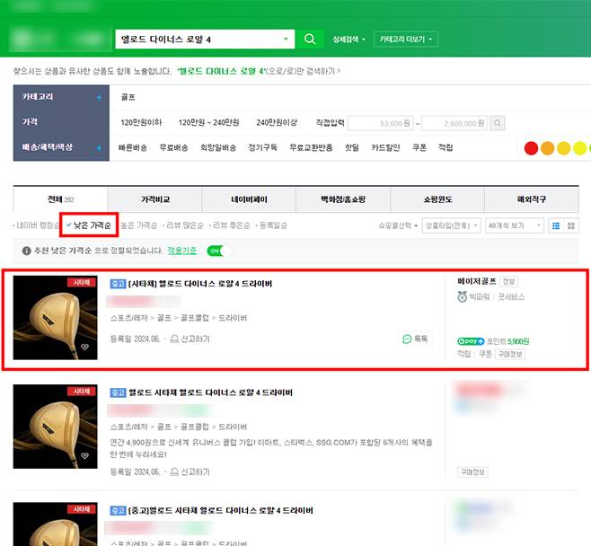 메이저골프는 N사 '낮은 가격순' 검색시