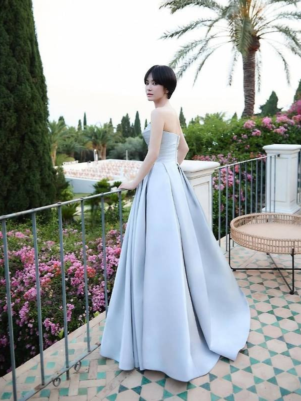 액세서리는 과감하게 생략해 드레스 자체의 매력을 극대화했고, 짧은 단발 스타일의 블랙 헤어는 마치 프렌치 시네마에서 튀어나온 듯한 감각적인 분위기를 더했습니다.