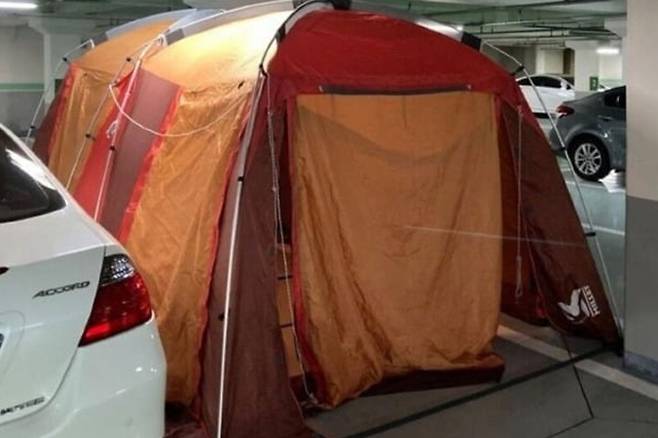 이어 같은 해 온라인 커뮤니티에는 지하 주차장에 대형 텐트 설치하고 피서를 온 것처럼 공용공간을 무단으로 점유했다는 입주민의 사례도 등장했다. 이런 사례는 현재까지 끊이지 않고 논란을 야기하고 있다. 실제로 아파트 1층에 주거하는 일부 입주민들은 발코니의 계단 등을 설치해 아파트 앞 화단을 개인이 소유한 부지처럼 이용하는 것으로 알려졌다.