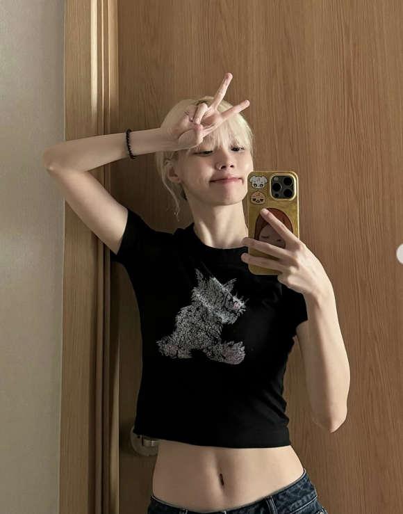 윈터가 선택한 WE11DONE의 크롭티는 단순히 ‘티셔츠’라는 범주를 넘어, 여름 데일리룩을 감각적으로 완성하는 핵심 요소로 기능한다.