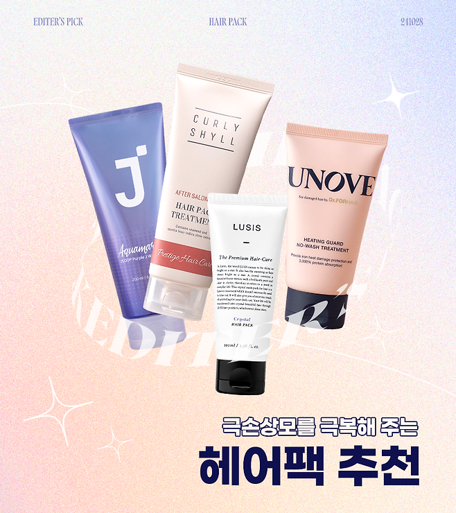 각 헤어팩별로 특징이 다르니 나에게 잘 맞는 헤어팩 찾아서 이번 가을은 부스스한 머리가 아닌