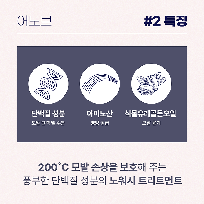 어노브 트리트먼트는 제이숲처럼 단백질과 아미노산이 주를 이루고 있어 광택과 윤기에 좋아.
