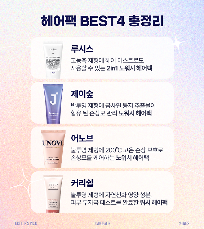 에디터가 n통째 사용하는최애템부터 올영 1위 헤어팩, 주변에서 추천받은 헤어팩까지