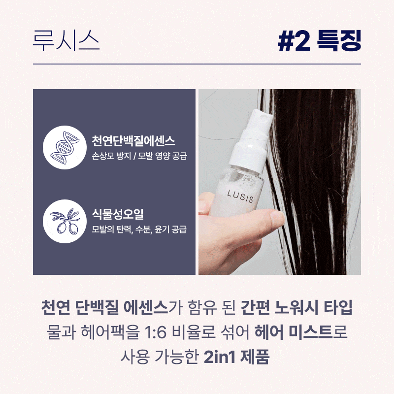 아직까지 천연 단백질 성분을 활용한 헤어팩은 루시스 뿐인데,