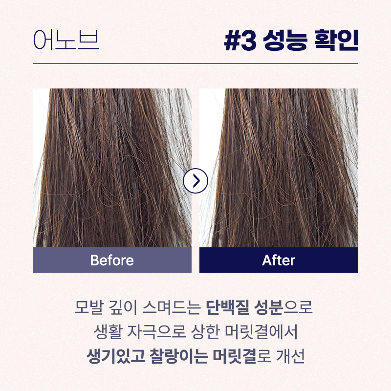 하지만 단백질 성분으로 구성된 제품이니 꾸준히 사용하면 손상모 케어를 기대해 볼 수 있을 거야!