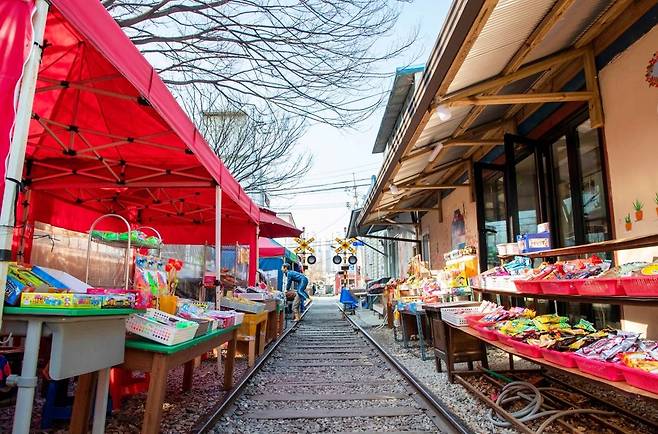 체험 요소도 다양하다. 철길 주변에서는 달고나, 뽑기, 딱지 등 추억의 놀이를 즐길 수 있고, 옛 교복을 대여해 사진을 남기는 체험도 인기다. 교복을 입고 철길 위에 서면 7080 세대에게는 향수를, 젊은 세대에게는 새로운 재미를 선사한다. 가족 단위 여행객부터 친구, 연인 방문객까지 폭넓은 연령층이 찾는 이유다.