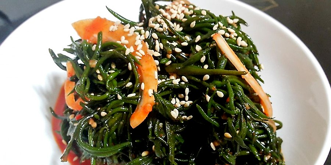 바다의 싱그러움이 가득 배어 있는 해초 톳은 한국에서 ‘해초의 왕’이라 불릴 만큼 건강식품으로 사랑받고 있어요. 가볍게 데쳐 초장에 찍어 먹으면 꼬들꼬들하게 씹히는 식감이 일품이죠.