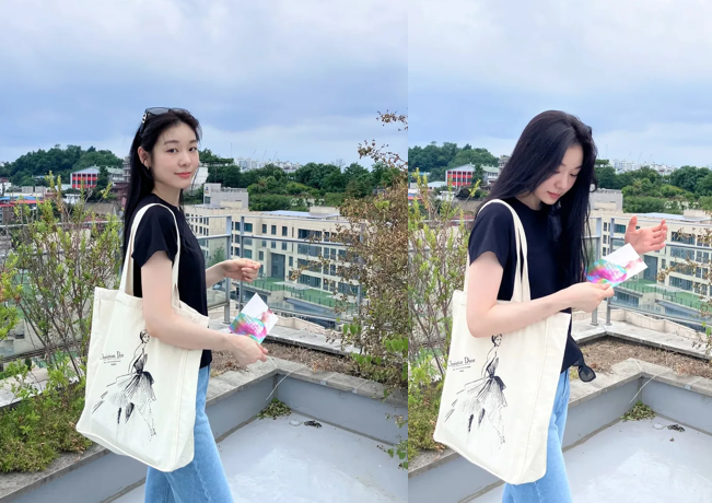 사진 속 김연아는 블랙 티셔츠에 연청 데님 팬츠, 그리고 감각적인 일러스트가 그려진 아이보리 에코백을 매치한 심플한 데일리룩으로 눈길을 끌었다.