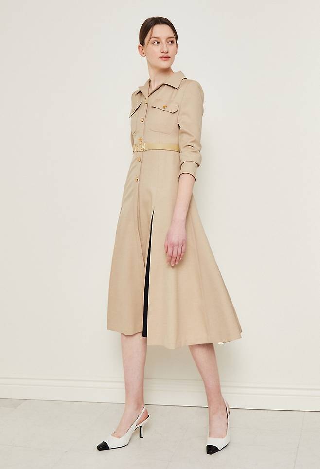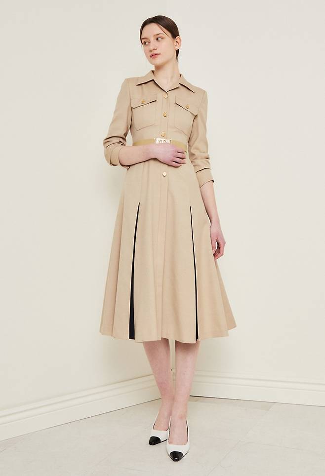 이 제품역시 '지고트(JIGOTT) 제품으로 플리츠 스커트 라인과 아웃 포켓 디테일을 더한 사파리 무드의 원피스룩으로 섬세한 디테일과 클래식한 컬러로 일상에서 데일리하게 연출이 가능한 실용적인 아이템이다.