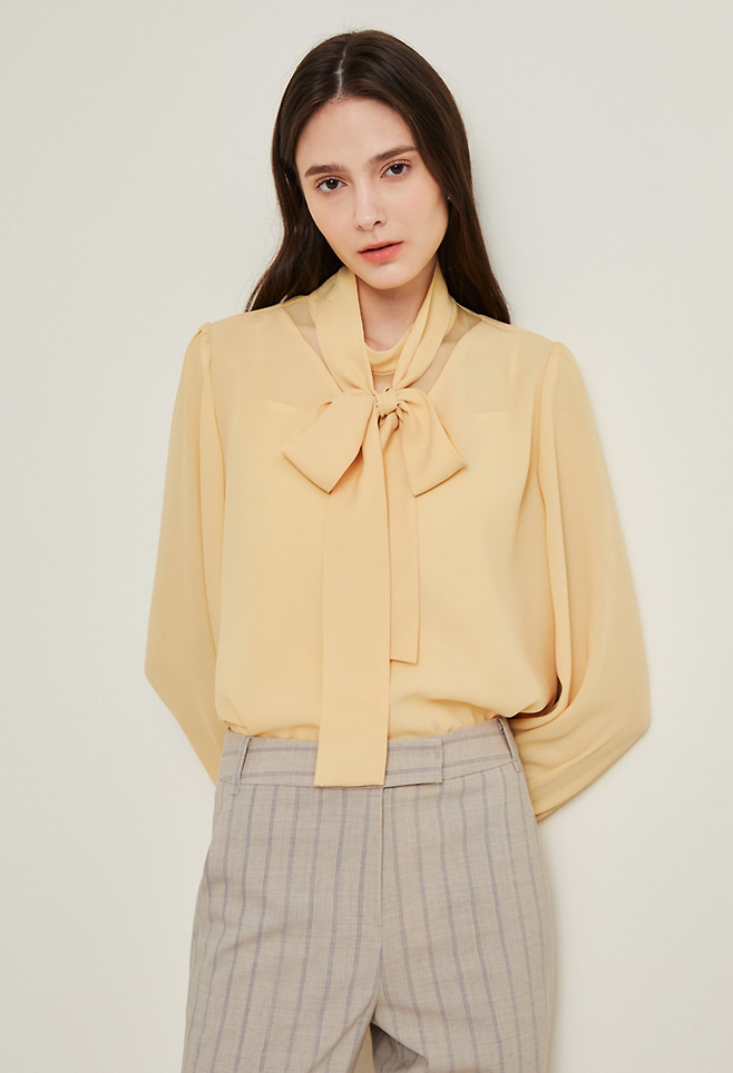 여성 캐릭터캐주얼 '지고트' 옐로 리본 블라우스 및 사파리 플리츠 원피스 '인기폭발'
