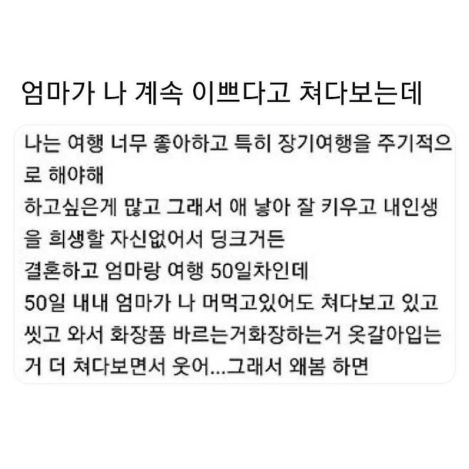 여행내내 엄마가 나 예쁘다고 계속 쳐다봄