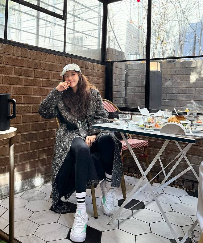 햇살 가득한 야외 테라스에서 여유로운 식사를 즐기는 모습조차 하나의 화보로 만드는 배우 이지아의 독보적인 패션 감각이 화제예요.