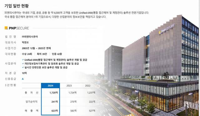 특히 '데이터베이스(DB) 접근 제어'와 '통합접근제어 및 계정관리 시장'을 개척, 이 분야를 선도하고 있다. 현재 시장에 공급하는 보안 솔루션은 총 7종이다. 고객사는 국내외 기업, 공공, 금융 등 6000여 곳에 달한다. 경영 실적이 놀랍다. 작년에 매출 623억 원에 당기순익 241억 원을 기록했다. 당기순익률이 39%에 달한다. 보안을 포함해 국내 소프트웨어(SW) 기업 10만여 곳 중 이 정도 순익을 내는 곳은 손가락으로 꼽는다. 작년 한 해만 그런게 아니다. 2010년부터 10년 이상 30%대 이상 순익을 기록했다.