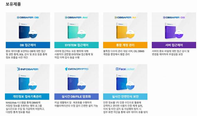 서버 접근제어(모델명 DB세이퍼 OS) 제품도 있다. 이 제품은 서버의 중요 파일에 대한 접근 감시 및 변경을 제어하며 무결성을 보장한다.